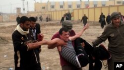 خۆکوژه‌که‌ خوێ کردووه‌ به‌ نێو چه‌کداره‌کاندا له‌و ده‌مه‌ی له‌ به‌رده‌م‌ یه‌کێـک له‌ باره‌گاکانیان له‌ شـارۆچکه‌ی تاجی باکوری به‌غدای پایته‌خت گردبووبوونه‌وه‌ بۆ وه‌رگرتنی موچه‌کانیان.