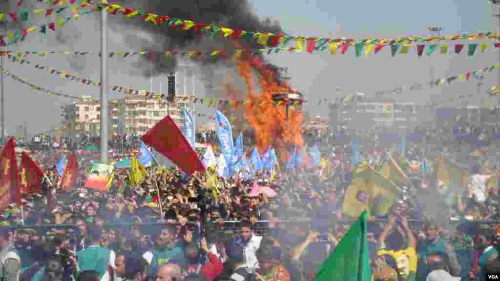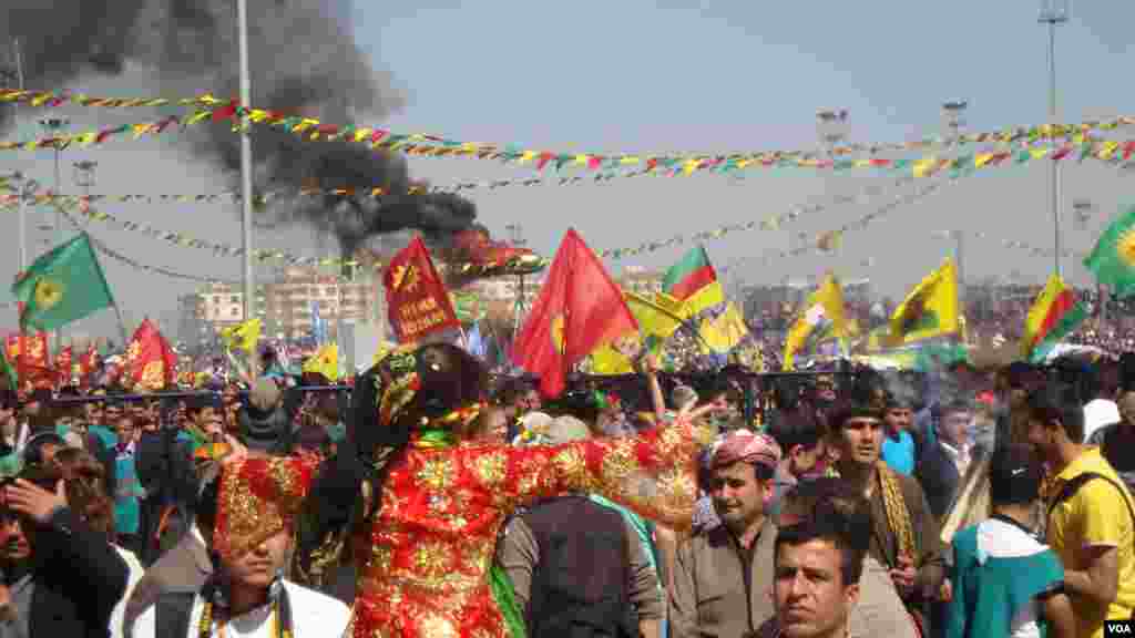 ئهمڕۆ پـێـنجشهممه له ئاههنگهکانی نهورۆزی ئامهد و له دهمی خوێندنهوهی پهیامه ئاشـتیـیهکهی عهبدوڵڵا ئۆجهلاندا به سهدان ههزار کهس کۆبوونهوه.