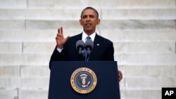 یهکهم سهرۆکی ئهفریکایی ئهمهریکا ڕۆژی چوارشهممه بهشـداری کرد لهو ڕێوڕهسمهی له واشنتنی پایتهخت سـازکرا بۆ بهرز ڕاگرتنی 50 ههمین سـاڵیادی ڕێـپـێوانه مهزنهکهی سـاڵی 1963 ی واشنتن که تیایدا زیاتر له 250 ههزار کهس بهشـداریـیان کردبوو بۆ داوای مافی یهکسـانی له وڵاتهکهدا.