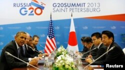 سهرۆکی ئهمهریکا پاش ماوهیهکی کورت له گهیشـتنی بۆ سـانت پـیتهرسبێرگ لهگهڵ سهرۆک وهزیری ژاپـۆن شینزۆ ئابێ له بارهی بهکارهێنانی چهکی کیمیاوی له لایهن حکومهتی سوریا و ههروهها مهسهلهی دیکه وتووێژی کرد.
