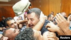 کهسوکاری بارمهتهکان شهوی ههینی له گهڕهکی بیر ئهلعهبدی باشوری بهیروت کۆببونهوه بۆ خۆشحاڵی دهربڕین بهرامبهر ئازاد بوونی کهسهکانیان.