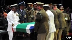 سهربازهکان 21 گولـلهیان به ئاسـماندا تهقاندووه وهک سڵاوی ڕێزلێنانی لهشـکری له نێڵسۆن ماندێلا و هاوکاتیش فڕۆکه لهشـکریـیهکان لهگهڵ بهخاکسـپاردنی ماندێلادا به ئاسـماندا بهرز دهفڕین.