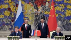 سهرۆکی ڕوسیا ڤلادیمیر پوتن و سهرۆکی چین شی جین پینگ چاودێری واژووکردنی ڕێککهوتنهکایان کرد که وادیاره دهبهرژهوهندی دهمودهستی سیاسی ههردوولا دایه.
