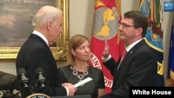 ئاشتۆن کارتهر وهزیری نوێی بهرگری ئهمهریکا به فهرمی ئهمڕۆ سێشهممه پـۆستهکهی وهرگرت پاش ئهوهی له بهردهم جۆ بایدن جێـگری سهرۆکی ئهمهریکا سوێندی فهرمی خوارد.