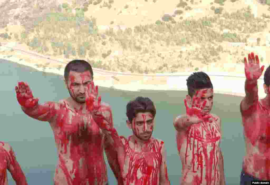 ژمارەیەک گەنجى ژینگە پارێز لە رێگەى خۆ روتکردنەوە و سورکردنى جەستەیانەوە ، نارەزایەتیان بەرانبەر ڕاوکردنى باڵندە و ئاژەڵە کێویەکان و زیان گەیاندن بە سروشتى کوردستان دەربڕى