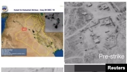 وەزارەتی بەرگری ئەمەریکا چەند وێنەیەکی هێرشە ئاسمانییەکەی ڕۆژی یەکشەممەی بۆ سەر ملیتانەکانی کەتایب حزبوڵا کە ئێران پشتیوانیان لێ دەکات، بڵاو کردۆتەوە و بە تۆڵەکردنەوەی هێرشە موشەکییەکانی ڕۆژی شەممە بۆ سەر بنکەیەکی لەشکری عێراقی ناودێری دەکات کە کارمەندێکی گرێبەستی ئەمەریکای تیادا کوژرا.