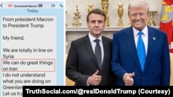 لە پەیامەکەدا ماکرۆن لەبارەی ئێرانەوە بۆ سەرۆکی ئەمەریکای نووسیووە "دەتوانین کرداری گەورە لەبارەی ئێرانەوە ئەنجامبدەین." ماکرۆن سەبارەت بە سوریاش لەنامەکەدا ئاماژەی بە هاوئاهەنگی ئەمەریکا و فەرەنسا لەو بارەیەوە کردووە و هەروەها ئاماژەی بە ناڕوونی سیاسەتی ترامپ بەرامبەر بە گرینلاند کردووە.