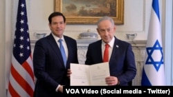 هەژمارەی تۆڕی ئیکسی وەزارەتی دەرەوەی ئیسرائیل دەڵێت سەرۆک وەزیرانی ئیسرائیل و وەزیری دەرەوەی ئەمەریکا مارکۆ ڕوبیۆ پێش کۆبوونەوەکەی لەگەڵ سەرۆک ترامپ، چاویان بەیەک کەوتووە و بە فەرمی ئەندامێتی خۆی لە "دەستەی باڵای ئاشتی" واژۆ کردووە.