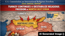 کۆمیسیۆنی ئەمەریکا بۆ ئازادی ئایینی نێودەوڵەتی دەڵێت لە سوریا ئیدارەی خۆسەر بە سەرۆکایەتی کورد توانیویەتی بەردەوامی بدات بە مۆدێلێکی فرەئاینی بەڕێوەبردن، لە کاتێکدا تورکیا هەوڵی تێکدانی سەقامگیری ئازادی ئاینی دەدات.