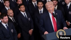 سەرۆک ترامپ ئەمەی لە کۆشکی سپی ڕاگەیاند، ئەو کاتەی لە بۆنەیەکدا پێشوازی لە یانەی تۆپی پێی ئەمەریکایی ئینتەر مەیامی و ئەستێرەی جیهانی لیۆنێل مێسی کرد.