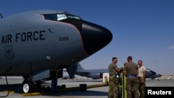 فڕۆکەی ئەمەریکایی جۆری KC-135 بۆ پڕکردنەوەی سووتەمەنی فڕۆکە جەنگییەکانی هێزی ئاسمانی بەکاردەهێنرێت.