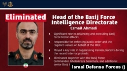 سوپای بەرگریی ئیسرائیل ڕایگەیاند لە هێرشێکی ئاسمانیدا لە ناوەندی شاری تاران، ئیسماعیل ئەحمەدی سەرۆکی بەشی هەواڵگریی هێزی بەسیجی ئێران کوژراوە.
