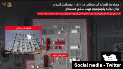لە گرافیکی تایبەت بە ڕاگەیاندنەکەدا، وێنەی سەتەلایتی بەکارهاتووە بۆ نیشاندانی ئەو بەشانەی کە کراونەتە ئامانج، بە تایبەتی ستونەکانی بەرهەمهێنانی ئاوی قورسە. ئاوی قورسی ناوکی لە ڕیاکترۆرەکاندا بۆ بەرهەمهێنانی پلوتۆنیۆم بەکار دێت، کە دەتوانێت بۆ چەکی ئەتۆمی بەکاربهێنرێت.