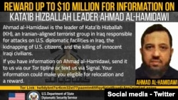 ئەمەریکا ڕایدەگەیەنێت 10 ملیۆن دۆلار پاداشت دەبەخشێتە هەر کەسێک زانیاری بدات لەسەر ناسنامەی ئەحمەد ئەلحەمیداوی، فەرماندەی حزبوڵای عێراق کە لە لایەن ئێرانەوە پاڵپشتی دەکرێت.