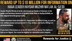 وەزارەتی دەرەوەی ئەمەریکا لە تۆڕی کۆمەڵایەتی ئێکس بڵاویکردووەتەوە هەر کەسێک زانیاری لەسەر فەرماندەی گروپێکی سەر بە ئێران لە عێراق بدات، پاداش وەردەگرێت.