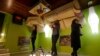 Women in traditional costumes are sprayed with water as members of the Marghareta Dance Group perform Easter folk traditions of the region in the Museum Village in Nyiregyhaza, northeast of Budapest, Hungary.