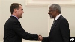 سهرۆکی ڕوسیا ئاگاهی دهدات که پێشنیازهکانی کوفی ئهنان، نێردراوی تایبهتی نهتهوه یهکگرتووهکان و کۆمکاری عهرهب دوا دهرفهته بۆ سوریا تا وڵاتهکه له ههڵایسانی شهڕی ناوخۆ دووربخاتهوه. ههروههاش دیمتری مێدڤێدیڤ پشتیوانی تهواوی مۆسکۆی بۆ ئهرکهکهی بهڕیز ئهنان ڕاگهیاندووه.