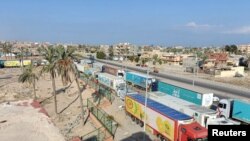 شایەتحاڵان بە ڕۆیتەرزییان وتووە بەرەبەیانی ڕۆژی سێشەممە نزیکەی 160 بارهەڵگر ئەل ئەریشی نیمچە دوورگەی سینای میسڕییان جێهێشتووە، لەوێ سەدان تەن لە یارمەتی چاوەڕێی ڕێککەوتنێک بوون لەسەر گەیاندنی یارمەتییە مرۆییەکان.