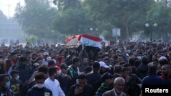دهست له کارکێشانهوهی مههدی خۆپێشاندهرانی به قهناعهت نههێنا که داوای گۆڕان له تهواوی سیستمی سیاسی دا دهکهن که دوای هێرشی ئهمهریکا له 2003دا سهپێنراوه و خۆپێشاندهران دهلێن سیستمهکه گهندهڵه و بۆ خهڵکی ههژاری عێراق ههوڵێکی ئهوتۆ نادات سهرهرای ئهوهی وڵاتهکه به نهوت دهوڵهمهنده.