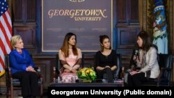 لە مەراسیمێکدا کە دوێنێ دووشەممە لە هۆڵی گاستن لە زانکۆی جۆرجتاونی واشنتنی پایتەخت سازکرا، خانم مێلان ڤێرڤێر بەڕێوەبەری جێبەجێکاری ئنستتیوتی جۆرجتاون بۆ بەرەوپـێشچوونی ژنان لە ئاشتی و ئارامی، گوتی جۆرجتاون بە شانازیـیەوە خەڵاتی ساڵی 2018 ی خۆی پـێشکەشی نادیە موراد دەکات.
