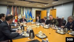 سەرۆک ترامپ ئەمڕۆ پـێنجشەممە بە یاوەری مایک پـێنسی جێگری سەردانی وەزارەتی بەرگریـیان کرد و لە لایەن جێمس ماتیس وەزیری بەرگریـیەوە پـێشوازیـیان لێکرا.