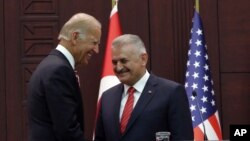 جۆ بایدن ئەمڕۆ چوارشەممە لە ئەنکەرە لە کۆنگرەیەکی ڕۆژنامەوانی لەگەڵ بن عەلی یەڵدرم سەرۆک وەزیری تورکیا گوتی لە ڕزگارکردنی مەنبج بە هێزەکانی سوریای دیموکرات - یەپەگەیان گوتووە لە پاش تەواوبوونی ئۆپەراسیۆنی مەنبج دەبێت بۆ ئەوبەری ڕووباری فورات بکشێنەوە، ئەگەر نا ئەوا ئەمەریکا چیتر پاڵپشـتیـیان ناکات.