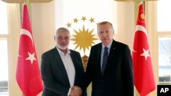 حکومەتی تورکیا لە بەیاننامەیەکدا ڕۆژی شەممە ئاماژەی بەوەدا ئەردۆگان لە ئیستەنبوڵ پێشوازی لە هەریەک لە سەرۆکی مەکتەبی سیاسیی حەماس ئیسماعیل هەنیە و شاندی هاوەڵی کردووە.