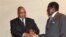 جهیکوب زوما، سهرۆکی ئافریکای باشور پیرۆزبایی له ڕۆبێرت موگابی دهکات به بۆنهی سهر له نوێ ههڵبژاردنهوهی وهک سهرۆکی وڵاتی زیمبابوهی.